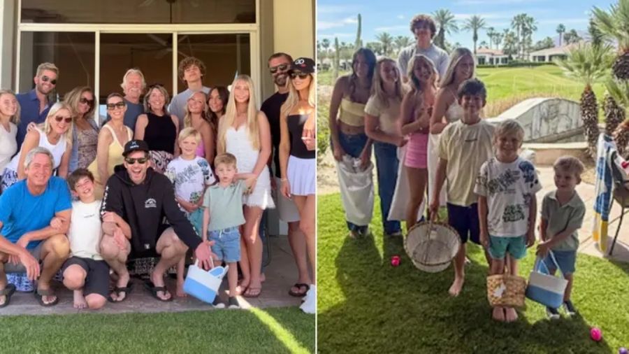 Beyond the couple photos, the stars shared a wider group shot that captured the full scope of the blended family gathering — roughly a dozen people, children included, enjoying the holiday together.